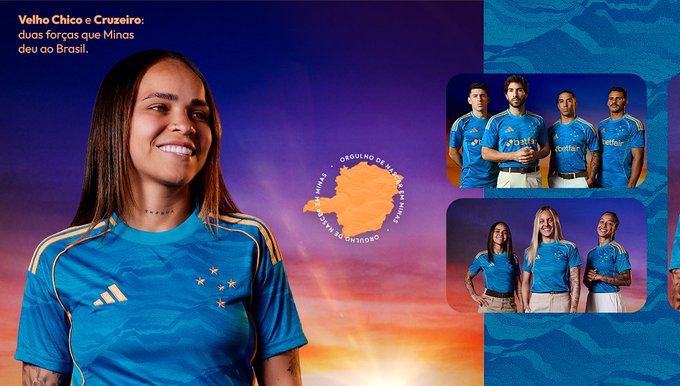 O Cruzeiro lançou oficialmente nesta sexta-feira, 26, a terceira camisa do clube para a temporada 2025. O uniforme, predominantemente azul, traz o escudo, a marca do fornecedor esportivo e outros detalhes em tom dourado e faz referência ao rio São Francisco. A estreia será neste sábado, 27, às 18h30, diante do Vasco, pelo Campeonato Brasileiro.