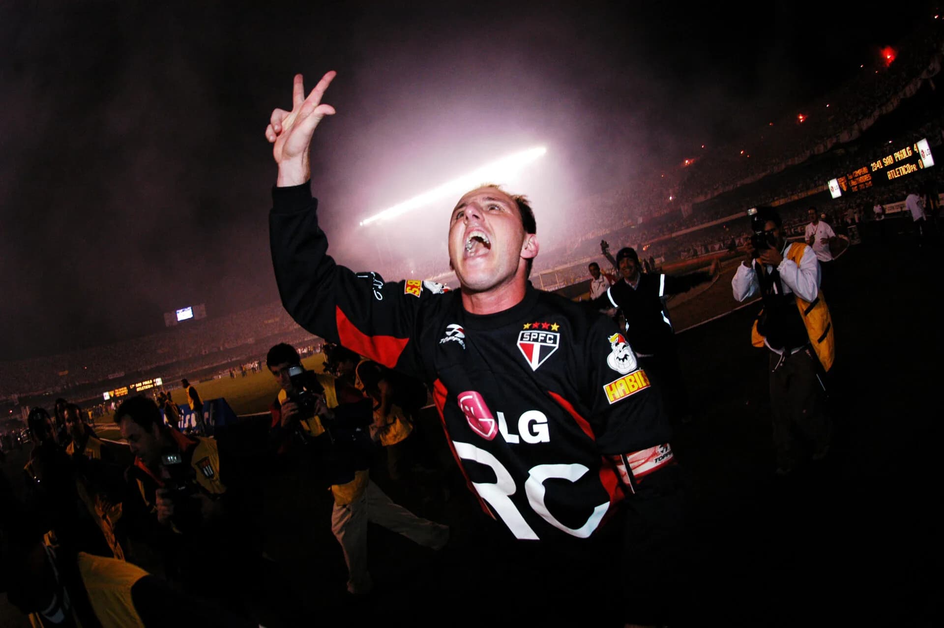 - O goleiro Rogério Ceni, do São Paulo, comemorando a conquista da Copa Libertadores da América 2005, após vencer o Atlético Paranaense por 4 x 0, no estádio do Morumbi – Alexandre Battibugli / PLACAR