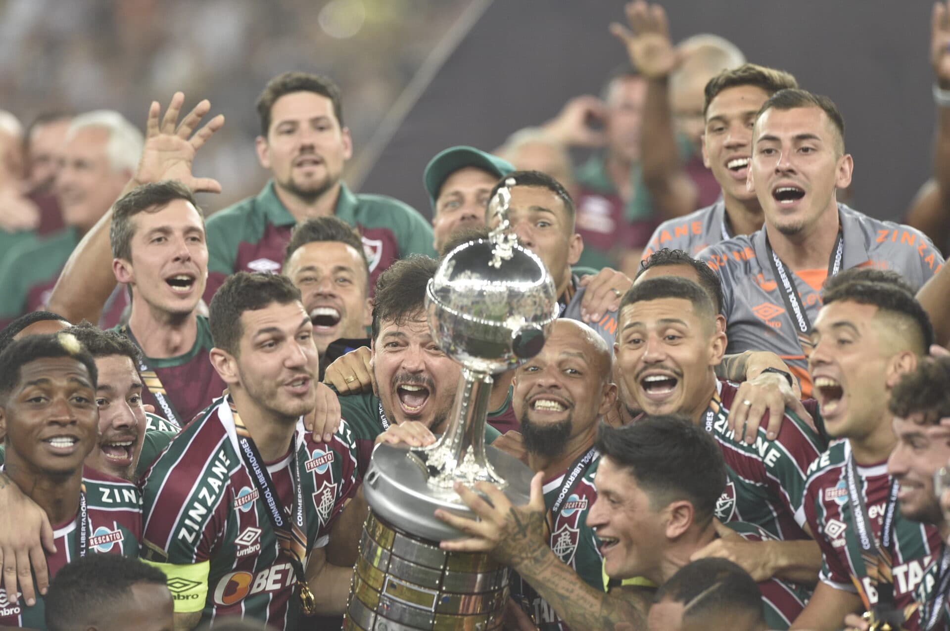 Campeões, enfim: jogadores do Fluminense com a taça da inédita Libertadores – Kaio Figueiredo/PLACAR