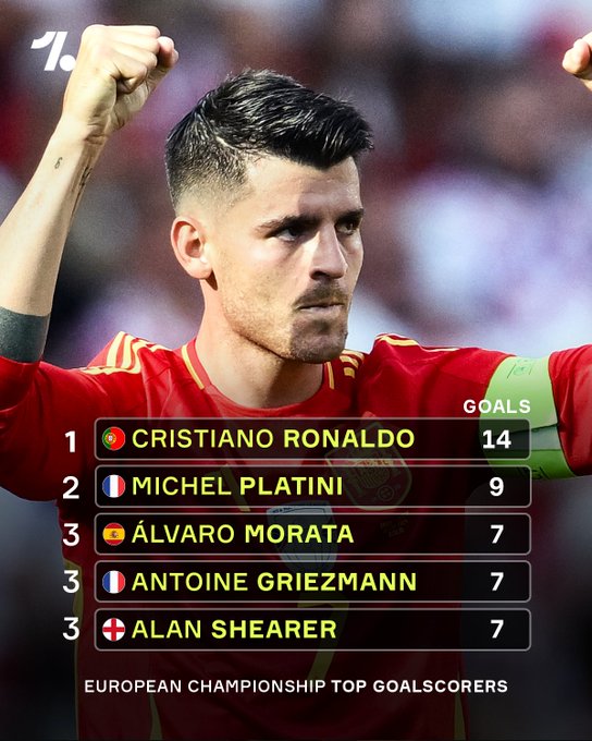 Já na primeira rodada da competição, “grandalhões” como Niclas Fullkrug (Alemanha), Wout Weghorst (Holanda) e Adam Buksa (Polônia) marcaram. Da mesma forma, Álvaro Morata (Espanha), um atacante de meio com características mais versáteis marcou e se tornou o 3º maior artilheiro da história da Euro (7 gols), empatado com Antoine Griezmann, da França e Alan Shearer, da Inglaterra, e atrás de Michel Platini, francês, (9 gols) e Cristiano Ronaldo, de Portugal (14 gols).