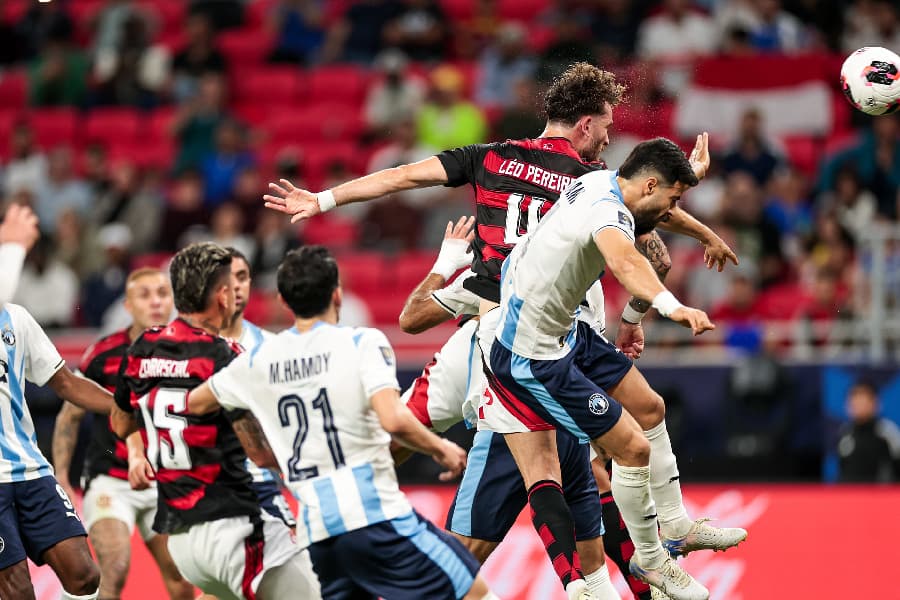 Desde o apito inicial, o time comandado por Filipe Luís impôs seu ritmo, chegando a ter 70% de posse de bola na primeira etapa. O Flamengo circulava a bola e buscava espaços, enquanto o Pyramids tentava, sem sucesso, explorar os contra-ataques. A insistência carioca foi recompensada aos 24 minutos. Em cobrança de falta precisa da ponta esquerda, Arrascaeta colocou a bola na cabeça de Léo Pereira. O zagueiro subiu entre dois marcadores e cabeceou no ângulo, sem chances para o goleiro El Shenawy, abrindo o placar e tranquilizando a equipe.