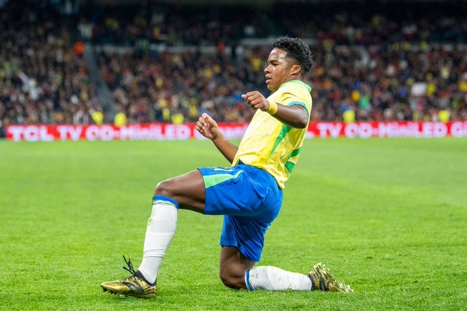 Negociado com o Real Madrid, Endrick se sentiu em casa nesta terça-feira, 26, no Santiago Bernabéu. O atacante do Palmeiras deixou seus futuros torcedores com água na boca no empate entre Brasil e Espanha. Rodri (dois gols de pênalti) e Olmo marcaram para os espanhóis; Rodrygo, Endrick e Lucas Paquetá (também de pênalti) garantiram o 3 a 3.
